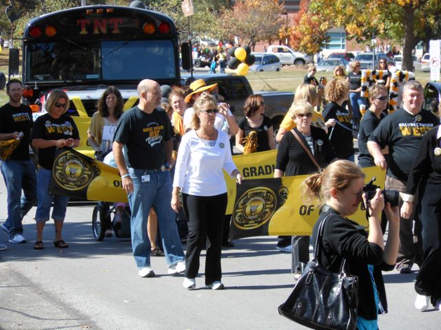 The school invited its alums to participate in the parade. The handful of folks in this photo represented the tens of thousands of graduates from the '70s, '80s and '90s. Needless to say, most of the alums from these decades were working on this weekday afternoon!